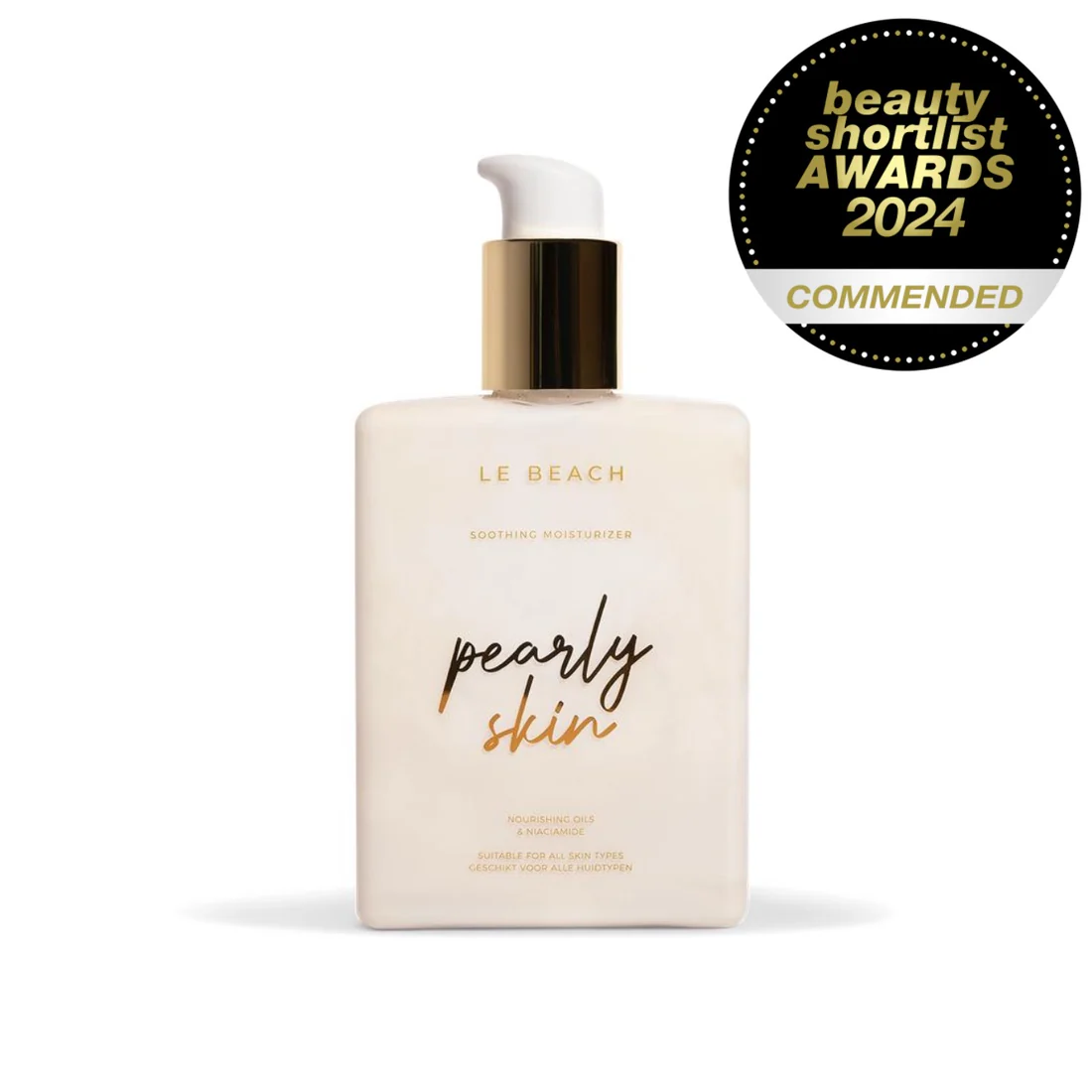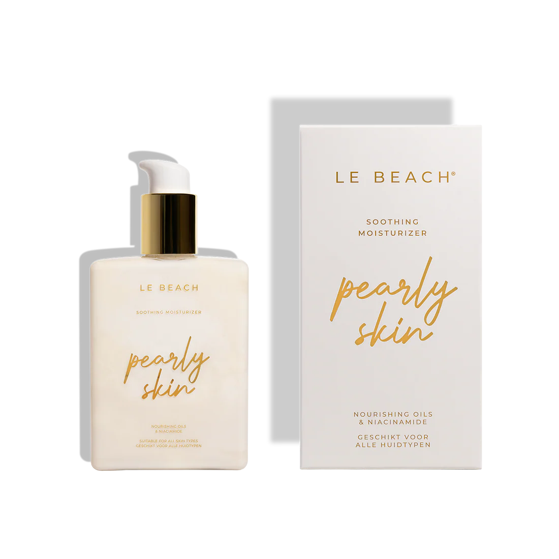 Luxueuze lichte moisturizer. LE BEACH Pearly Skin is geïnspireerd door de lumineuze eigenschappen van parel. Heerlijk geparfumeerd met de kenmerkende tropische geur van LE BEACH met o.a. een vleugje limoen, geformuleerd met Niacinamide, Olijfolie en Abrikozenolie laat je huid zijdezacht en stralend achter. Pearly Skin gemaakt met vitamine-rijke oliën & Niacinamide, is een luxueuze dagelijkse moisturizer die hydrateert, regenereert en alle huidtypes beschermt tegen de uitdrogende effecten van de omgeving. De huid wordt gekalmeerd, gevoed zonder vet aan te voelen. Pearly Skin is zacht & licht, het is daarom ook geschikt voor het gezicht.